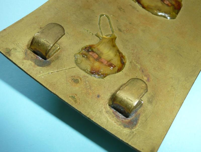 An early pattern with out retaining loop, cap badge mounted on front is white metal (not anodised) and is on tangs which have been glued down on the reverse. Some surface scratches to gilt brass backing plate otherwise in good condition.