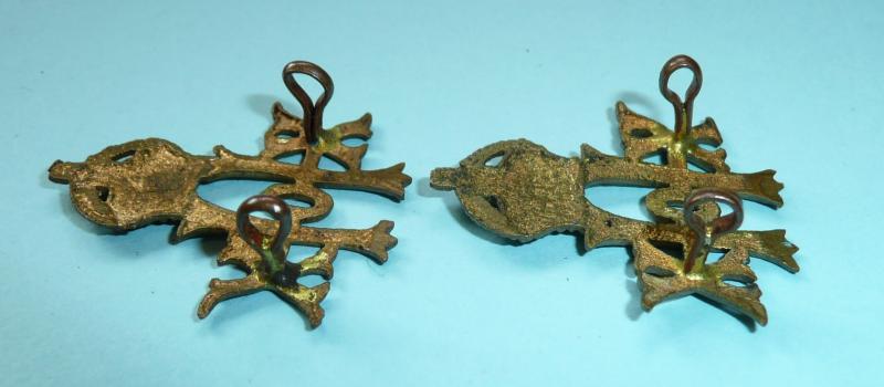 Cast pair of collar badges with two original loops to the reverse. Look theatre made most probably in India. In very good condition.
