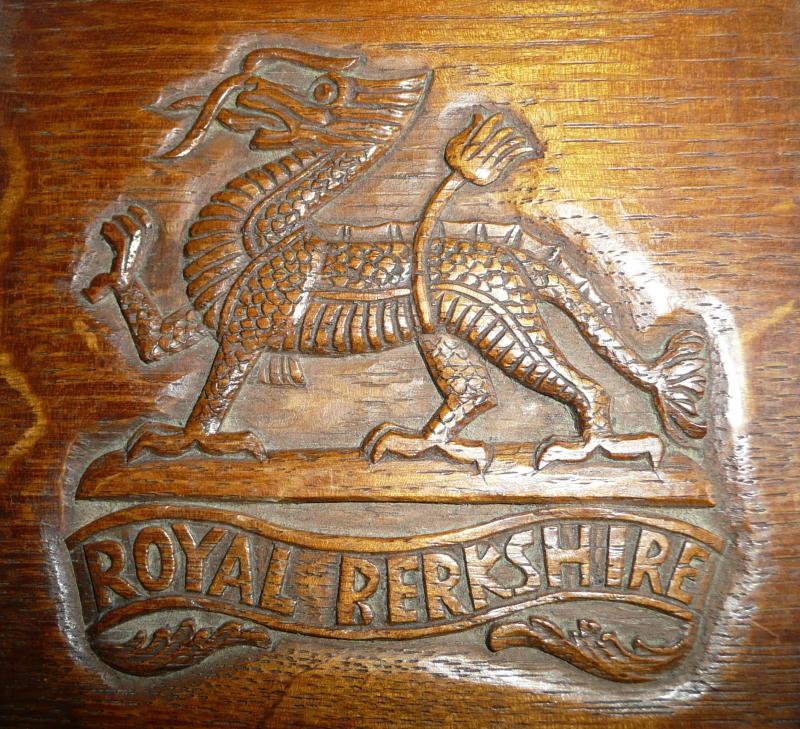 Royal Berkshire Regiment Carved Wooden Oak Trinket / Cigarette Box