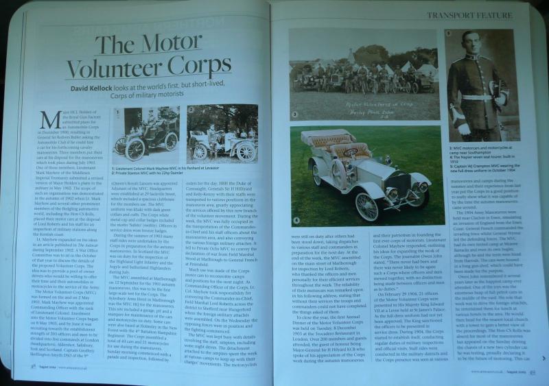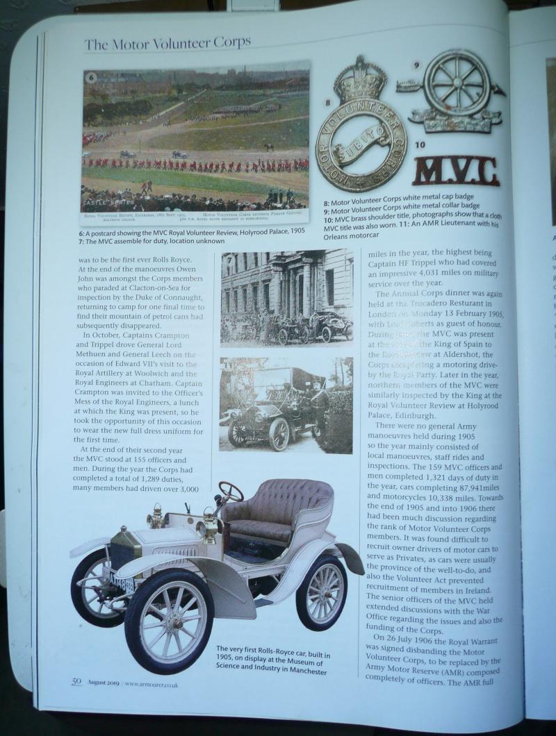 Their Latin motto "Subito" means "Suddenly". The corps was a small unit of "gentlemen-motorist" owner volunteers and their chauffeurs who provided transport for General Officers, their staff and umpires on manoeuvres, etc. The corps high point was the 1905 Royal Review at Holyrood, Scotland, where the ten car Scottish section took part.
