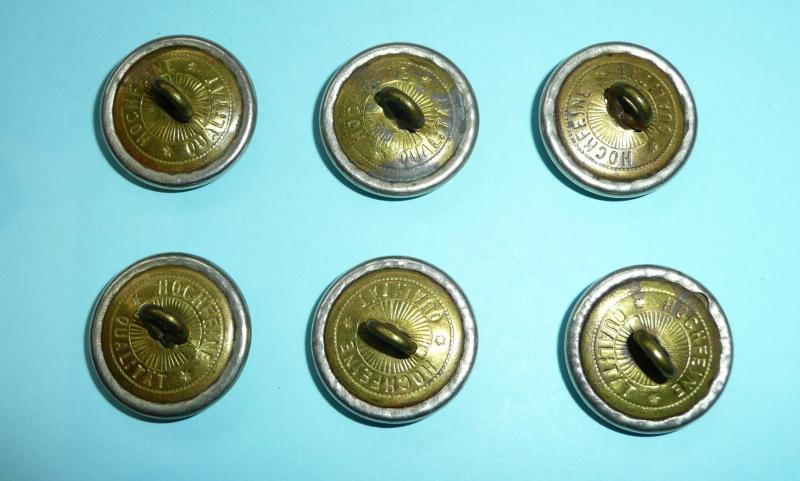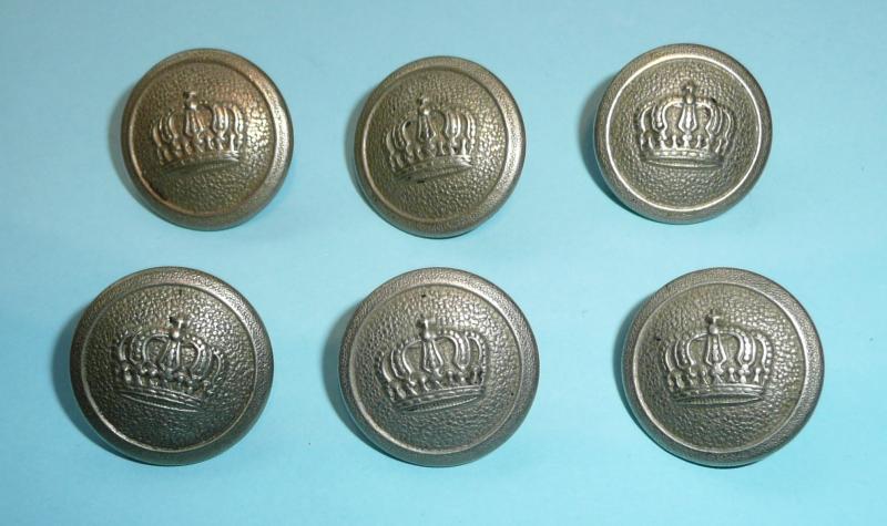 Circa 20.5mm in diameter, fixed shank, slightly domed and marked "Hochfeine Qualitat" to reverse. In super condition. Six available upon first listing.