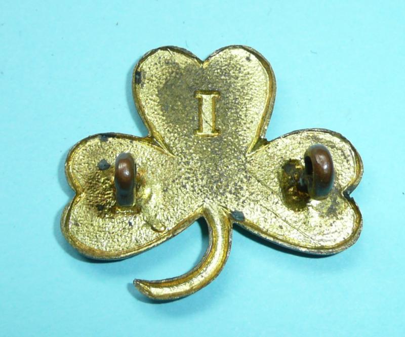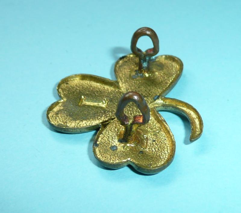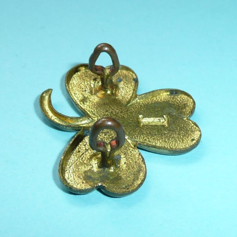 Good scarce die-stamped brass seeded shamrock bearing the letters SIY. Some wear to gilt finish and loops have been reshaped upwards but still fully functional and overall in lovely condition. Circa 26mm tall and 30.5mm wide.