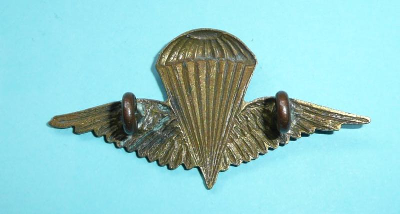 This pattern of metal badge, usually worn No 3 dress, is believed to be an older pattern of that currently issued to the Pakistani Parachute qualified military personnel. In very good condition with two original D shaped lugs to the reverse. Circa 24mm tall and 58mm wide. Happy to be corrected as to country and unit.