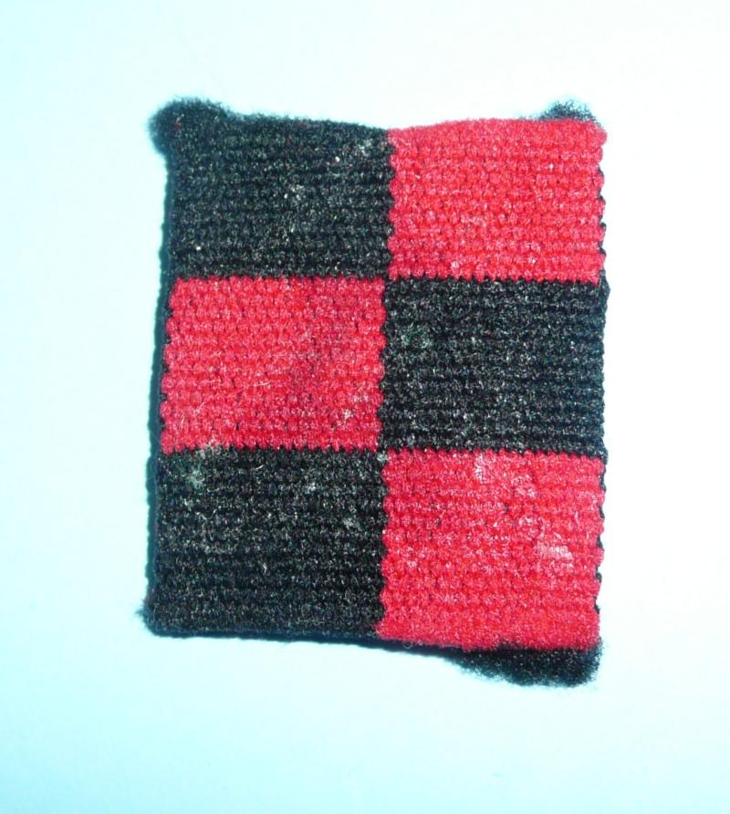 Worn circa 1900 - 1944, and again by all ranks from 1946 - 1961 on the Gurkha hat. Worn in opposite ways by the 1st and 2nd battalions Each square is circa 12mm tall and 15mm wide. Minor edge wear and glue to reverse as removed from hat.