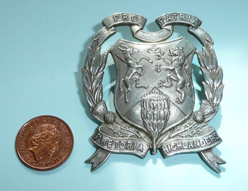 South Africa - Pretoria Highlanders Officer's Tam O'Shanter Cap Badge - Silver stamped