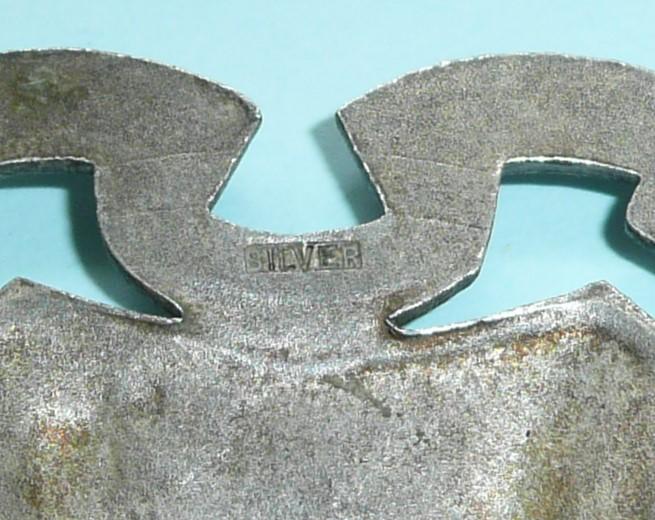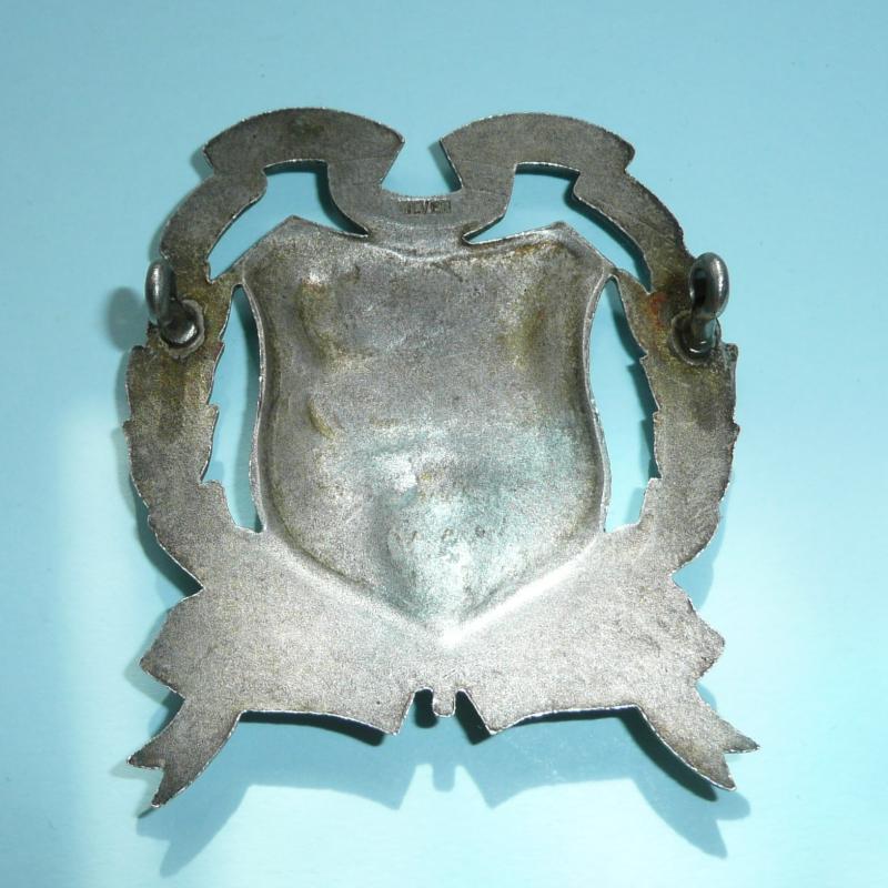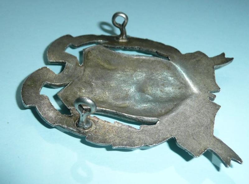 A large and heavy die cast silver badge stamped "silver" with two original silvered loops to reverse (slight twisting). Circa 6cms tall. This particular design as worn from 1948 (raised lion's paw; earlier patterns with paw downwards).