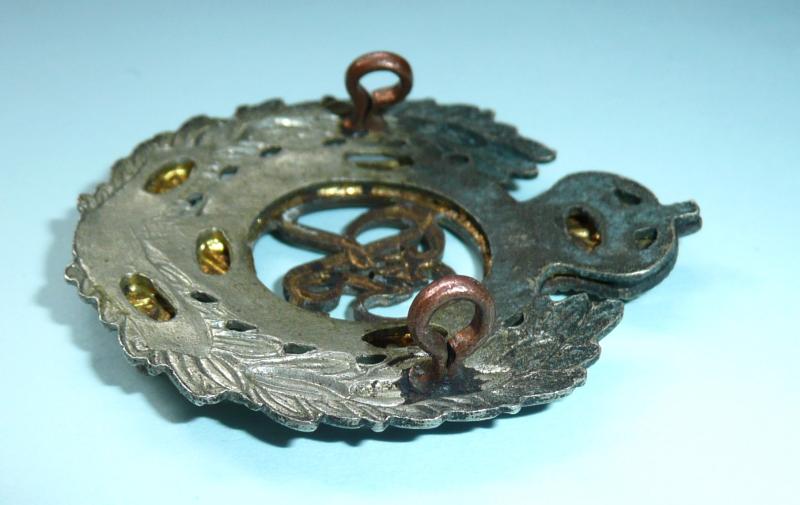 A Post war pattern, worn 1949 - 1953 example on loops and therefore deemed to be an WO1 / officer's issue. Sweat / braising holes to reverse. A touch of verdigris to front, some dulling to finish otherwise in good condition.