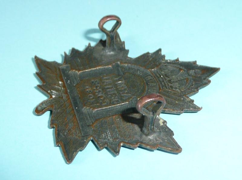 Die struck pickled copper cap badge with two original loops to the reverse. This is the first pattern with incorrect "'(DS)" which was replaced subsequently with a version with the legend "(OS)" which stood for "Overseas Service".