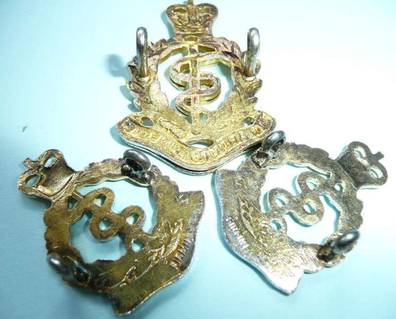 Royal Army Medical Corps RAMC Officer's Gilt & Silver Plate Cap Badge and Collar Set