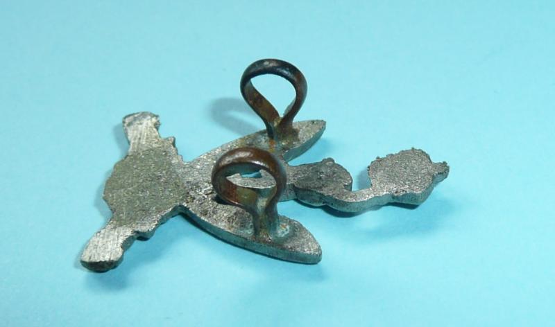 A small sand cast plated white metal example with two original loops to the reverse. Circa 27mm tall. Scarce. Comm EdBr