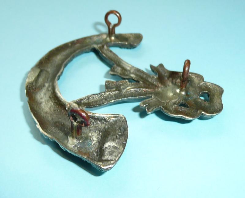 Not sure if this is 1st or 4th Battalion Gurkha Rifles, or something else entirely. Came in with a large Gurkha collection. A large badge, cast in white metal with three original copper loops to reverse. Circa 53mm tall and 57mm wide. A substantial badge, no doubt theatre made, any information welcome.