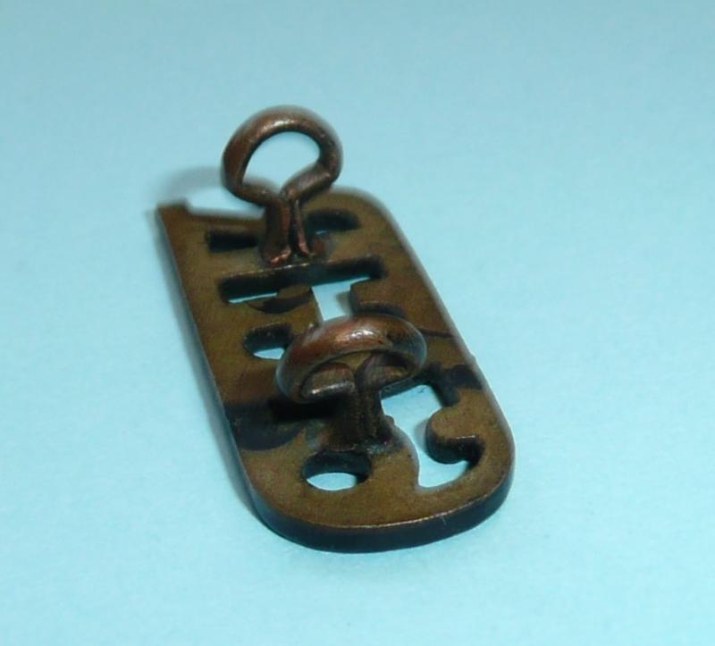 A blackened brass '6GR' shoulder title for the 6th Gurkha Rifles. In good condition complete with original lugs (slight bending). Circa 30mm wide and 12mm tall.