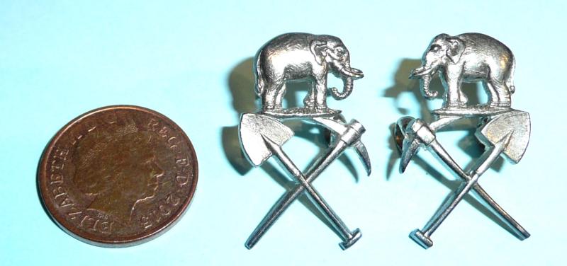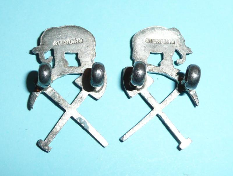 Indian Army - Officer's Madras Pioneers Matched and Facing Sterling Silver Collar Badges