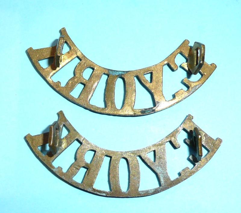 WW1 East Yorkshire Regiment Pair of Matching Brass Shoulder Titles