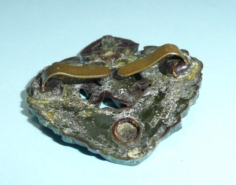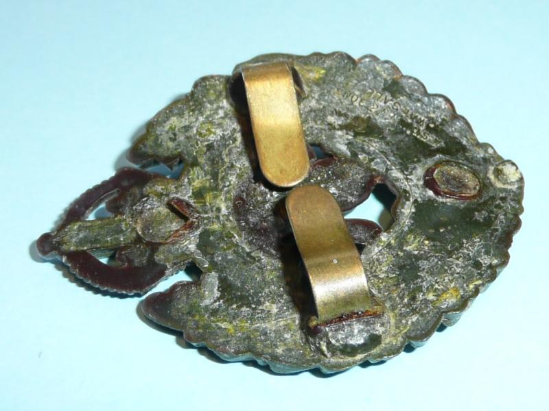 Dark brown plastic bakelite with original tabs and maker marked 1A and Stanley & Sons, Walsall. In poor condition and bent to shape and extremely grubby but an honest been there example. Sold as seen.