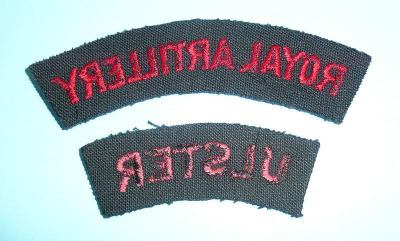 Royal Artillery / Ulster (51st Anti Aircraft Brigade) Northern Ireland Combination Embroidered Felt Cloth Shoulder Title Set