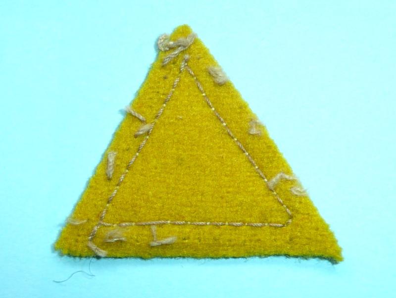 A scarce white leather triangle sewn to a yellow felt backing as worn by Armoured units attached to the Division. Rare. Comm PaLi
