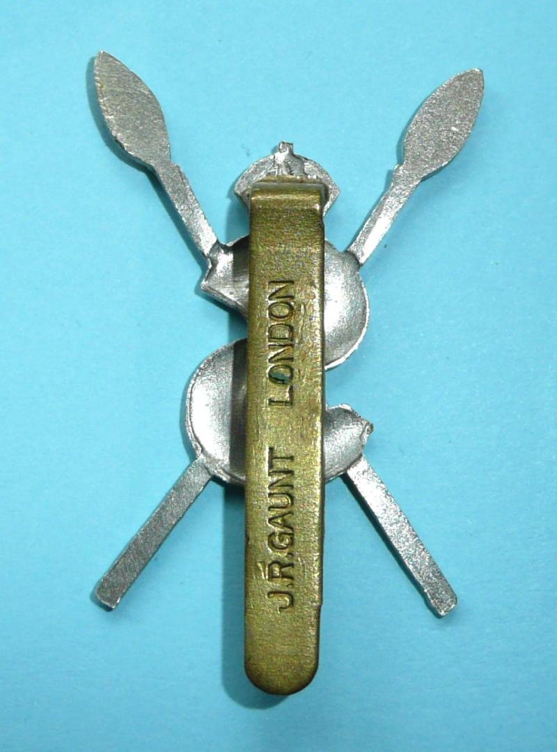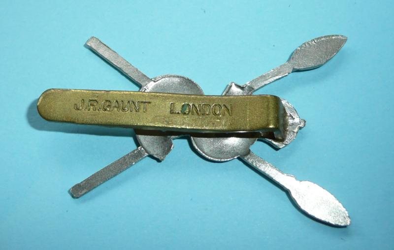 Die cast white metal with original slider to reverse stamped JR Gaunt London (no dot). In excellent condition. As worn from circa 1942 - 1952.