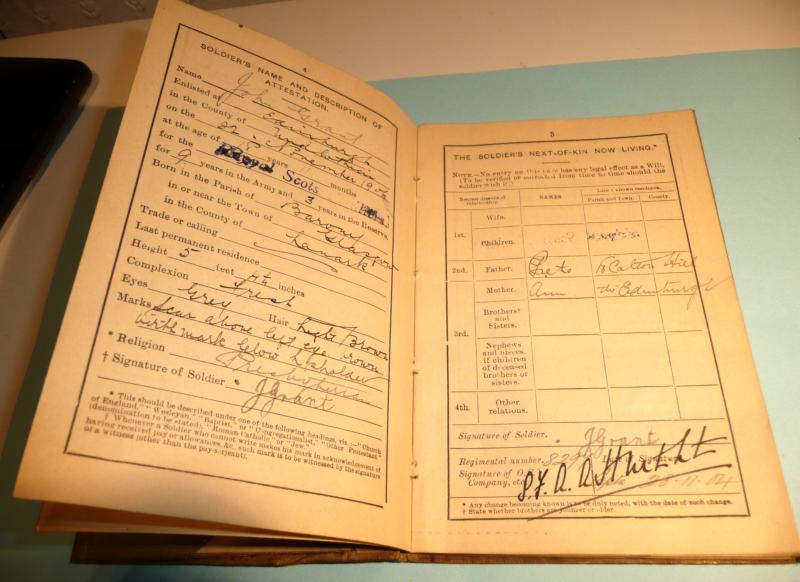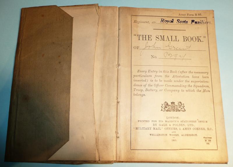Edwardian British Army Soldiers Small Book (Army Form B50) - John Grant, Royal Scots Fusiliers (RSF) - 1904