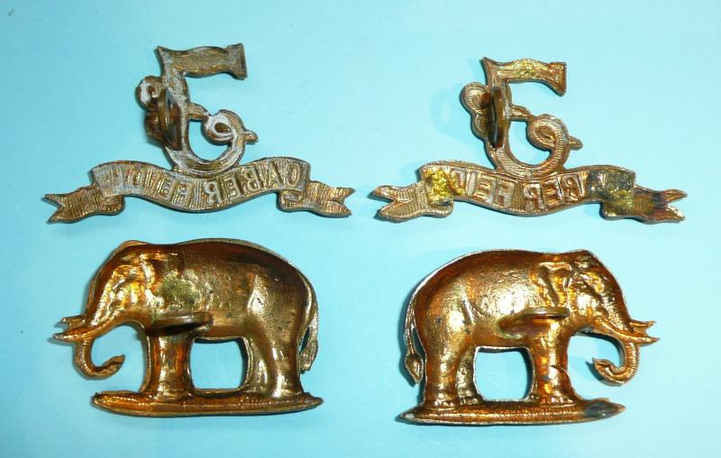 A matching set with one single central loop to the reverse of each part, so a later issue. In very good condition. Worn from 1898 - 1961. F cyphers were worn facing left, but the elephants were worn facing.