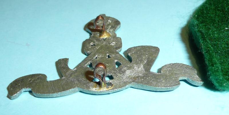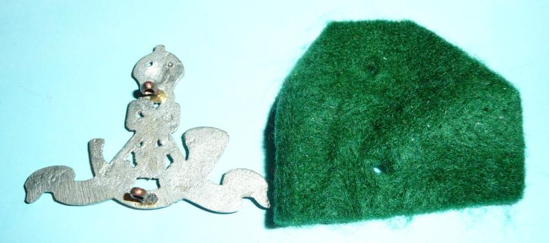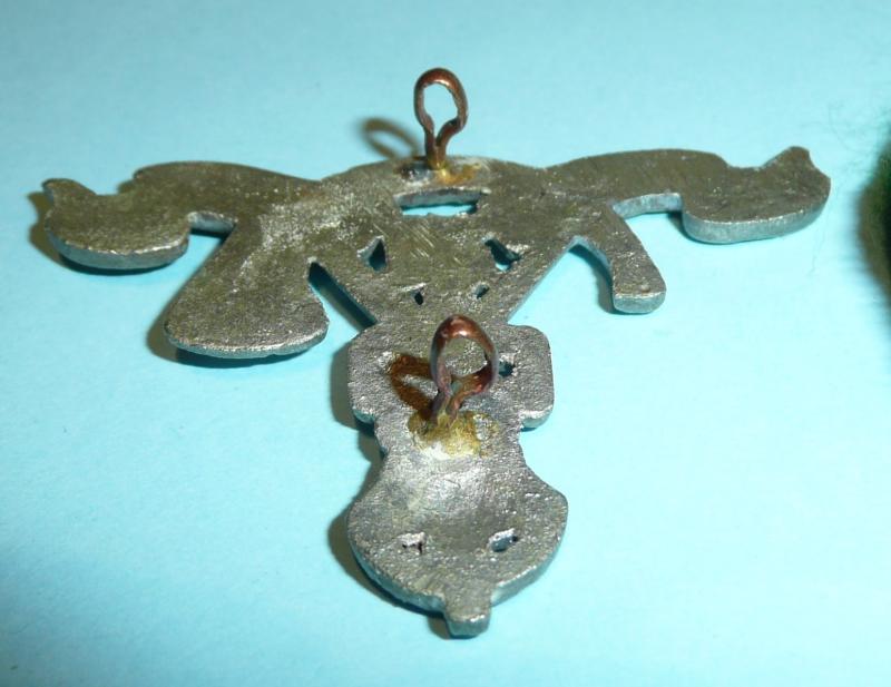 A white metal theatre cast example with two original loops and mounted on green felt backing for display. A "bearer" was another term for the entry level soldier in the regiment otherwise known as a "sepoy". Nicely cast and in very good condition. As worn from 1922 - 1947.