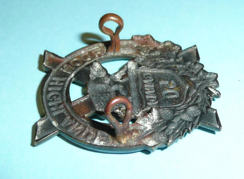 A small die struck bronze sporran badge at circa 35mm tall. Two loops but one of these is a contemporary replacement. Most probably an officer's issue given the OSD finish. I believe other ranks wore this in white metal. Scarce.