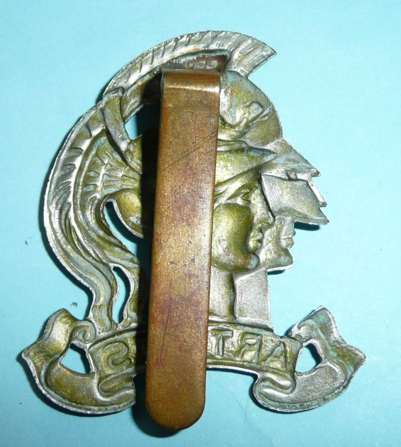 A die struck white metal cap badge for the Artists Rifles with an original slider to reverse. This pattern with "Artists" only on the scroll. It was sealed in white metal on 14th April 1938, following their becoming affiliated to the Rifle Brigade in 1937, having formerly been known as the 28th Battalion of the County of London Regiment (Artists' Rifles).