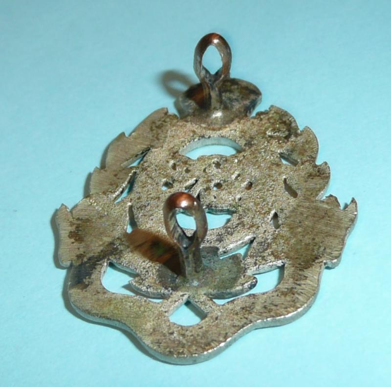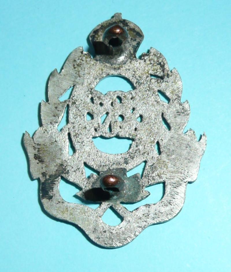 A cast white metal example, which appears to have been silver plated with two original loops (pinched but functional) to the reverse. An attractive badge, circa 37mm tall. King's crown. As worn from 1922 when the 27th Punjabis became the 3rd Battalion,15th Punjab Regiment and wore this badge until circa 1953. At the time of Independence the Regiment was allocated to Pakistan.