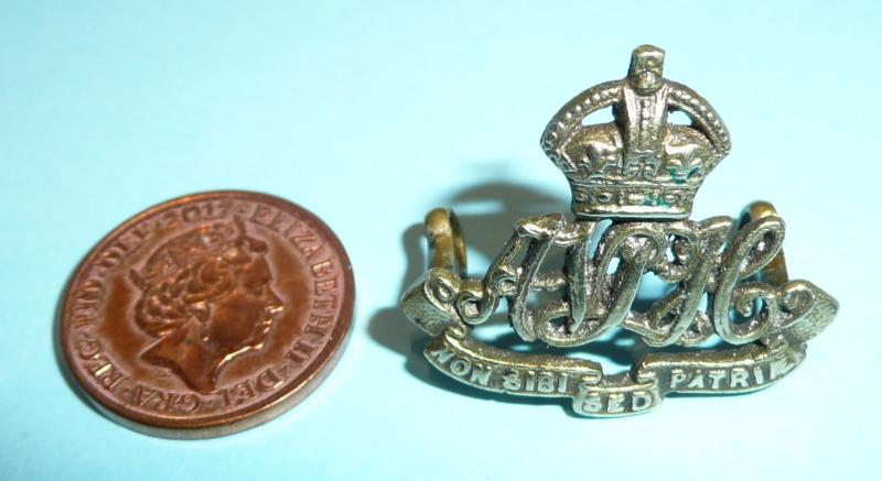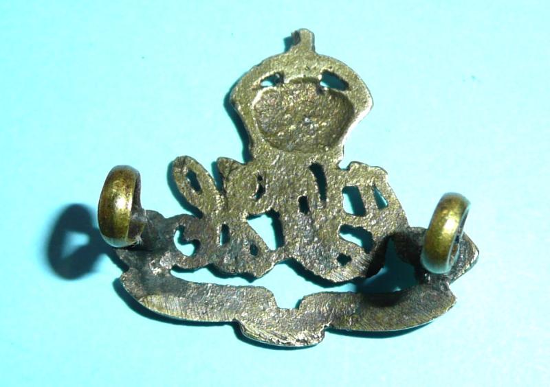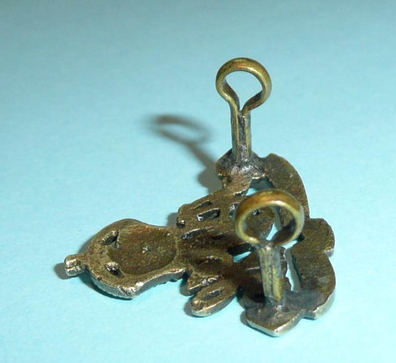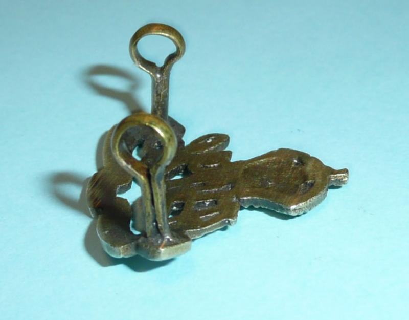 A neatly cast silver plated example, in the form of a crowned 'AVLH' monogram in script with two original long copper loops for wear in the officer's side cap. King's crown, pre 1947. Circa 2.4cms tall and 2.7cms wide. Scarce.