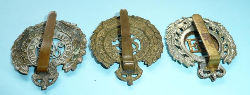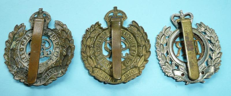 Three worn original pattern cap badges, GV, GVI and EIIR issues. In good condition overall, some polishing to GVI issue. Comm SiSa.