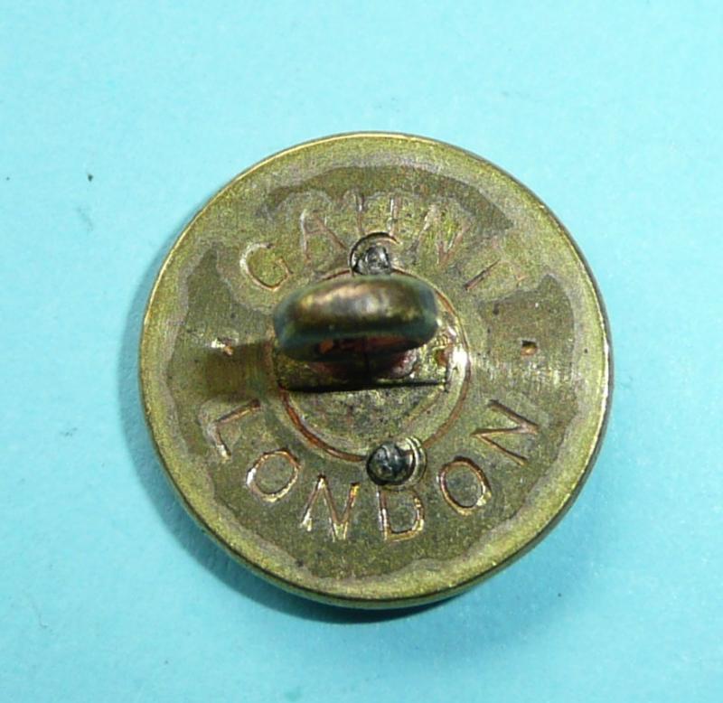 Circa 15.5mm in diameter, fixed shank, flat gilt button with mounted silver device Britannia seated with laurel leaf and trident. Maker marked Gaunt London. In very good condition.