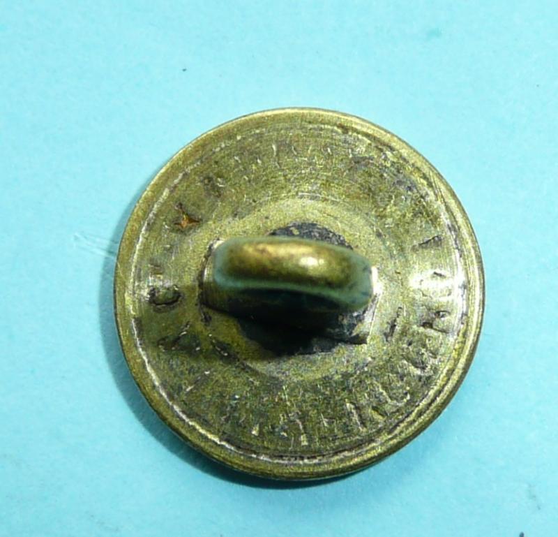 Circa 14mm in diameter, fixed shank, flat gilt button with engraged 9 over crossed lances. Maker marked but hard to read, but looks like Pitt & Co Maddox St, London. In very good condition. An early button. Scarce.