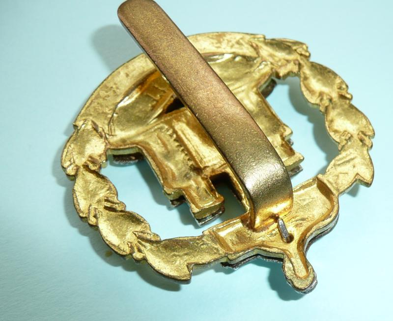 A commemorative silver plated and gilt badge with original slider. The give away is the small tang fixing above the slider This is a souvenir badge. Sold as seen.