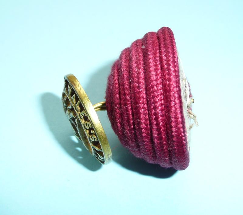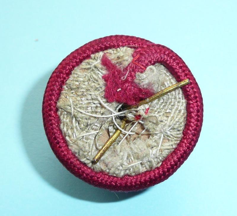 Royal Berkshire Regiment - Without 'R Berks' below the dragon indicating a 1902-1920 issue mounted on a red/ maroon cord boss with two retaining wires still present. I think this has been mounted on the wrong coloured cord boss. According to K&K it should have been fitted to a khaki cord boss and worn with a red felt backing. It can be easily removed and applied to the correct colour boss if you happen to have one (final photo demonstrates how easily it can be changed over). Error reflected in price. Sold as seen.