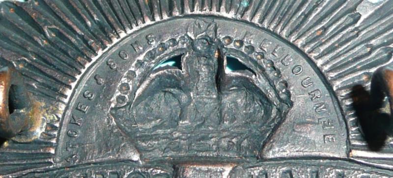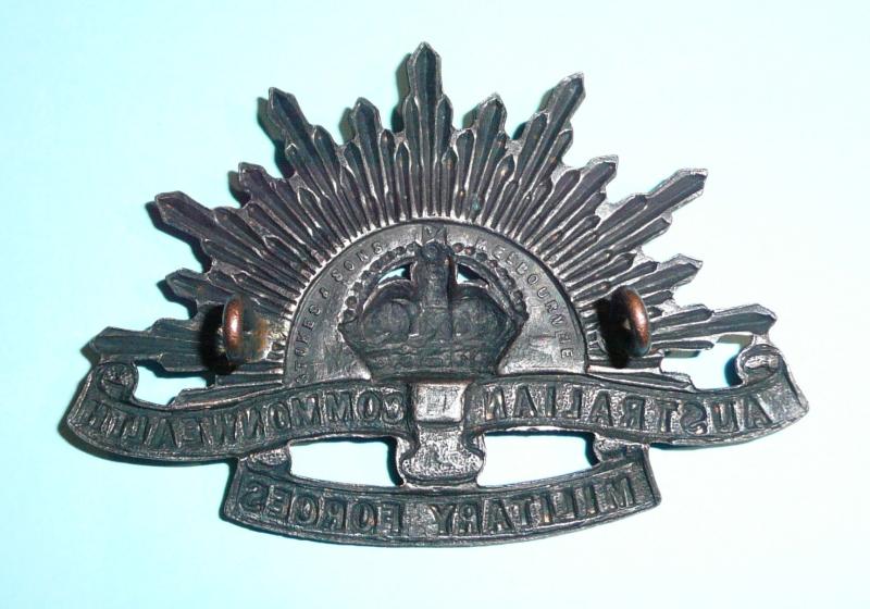 Australian Commonwealth Military Forces Blackened Bronze Rising Sun Cap Badge - Stokes