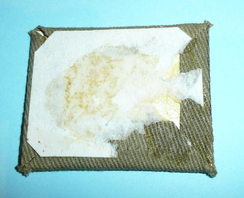 This is a attractive (regrettably single) 4th Battalion Welsh Regiment distinctive red saucepan overpainted or stenciled onto a printed formation sign. It is folded for wear but glued to a piece of card to stiffen it and another piece mounted for display. Very scarce.