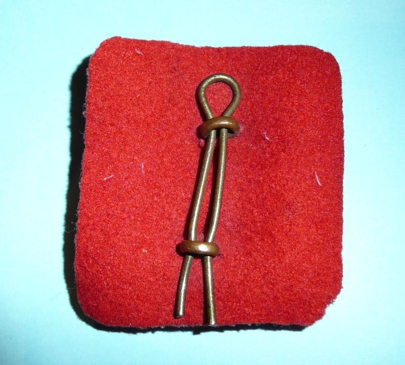 Brass badge with two loops mounted on gosling green felt cloth backing (on another layer of scarlet cloth presumably to make the gosling green stand out against khaki tunic). In very good condition.