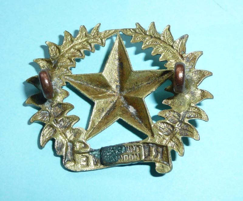 Die struck in gilding metal with two original loops and a maker's tablet JR Gaunt / London. Some verdigris to reverse otherwise in very good condition with sharp detail. This pattern worn in this size as both a forage cap badge and collar badge.