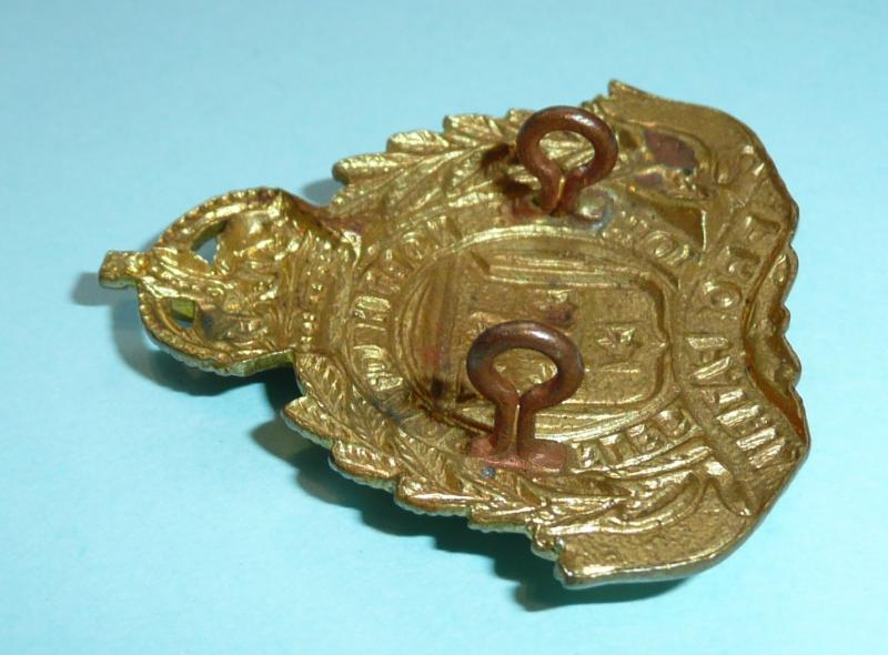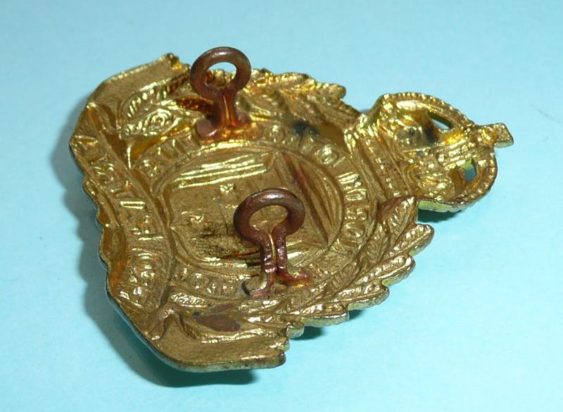 A gilding metal example , die struck with two original loops to the reverse (some slight bending to these but still functional). This pattern and size also worn as a collar badge. Sharp detail.