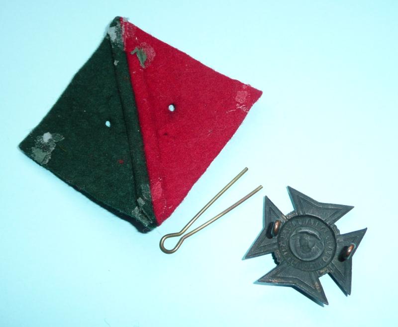 A red enamel and blackened brass cap badge, post 1964 so worn without a crown and mounted on its original felt backing cloth (the correct pattern for this regiment). Two original loops with cotter pin Some glue traces to reverse. Slight hole in the maroon half of the backing cloth otherwise in super condition for age. This format as worn on the beret.