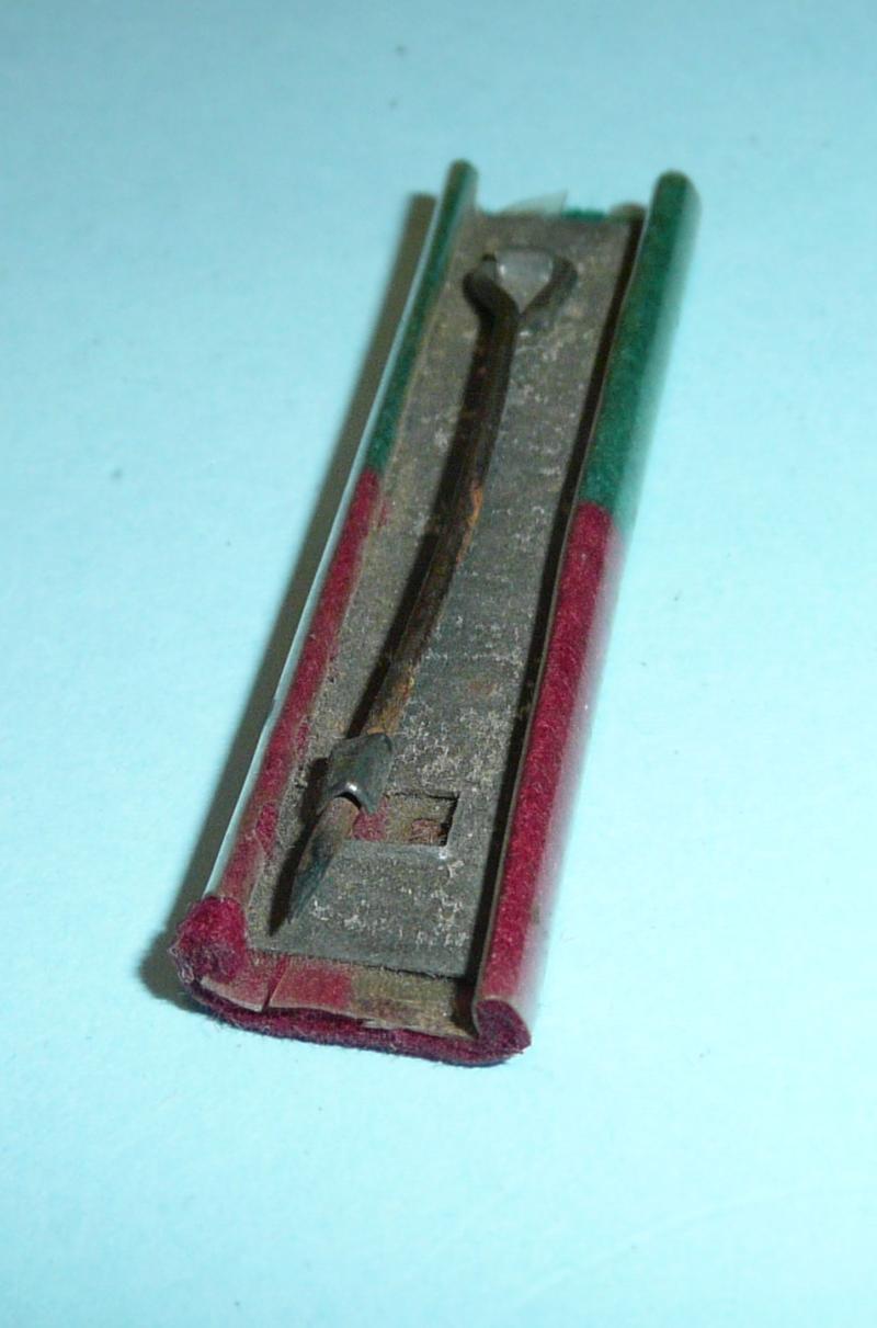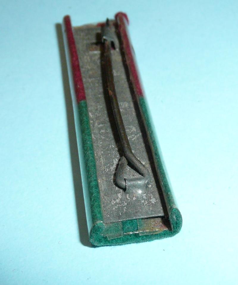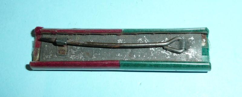 An early looking example with plastic protective cover (slight corner damage to this protective cover) otherwise in good condition. A WW1 tank in gilt brass mounted on green / maroon felt cloth. All attached to a metal ribbon bar with original pin fitting. Probably interwar.