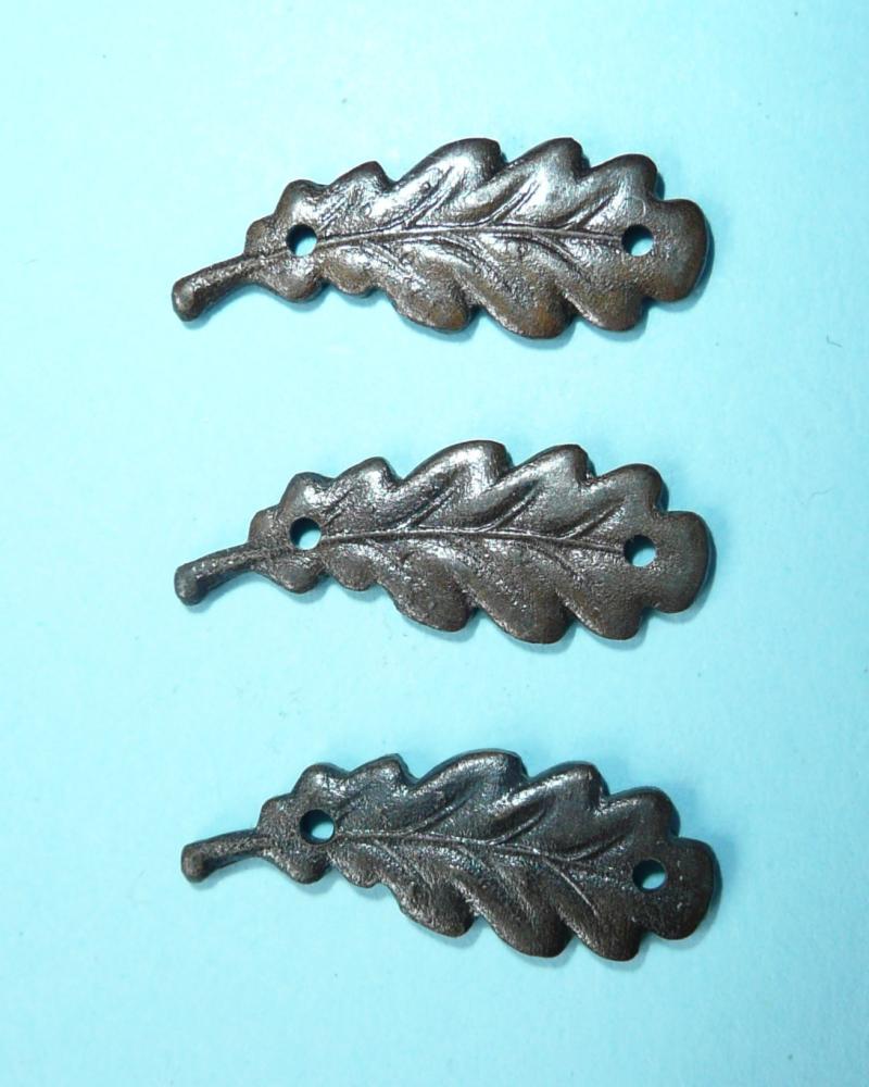 Mention in Despatches (MID) Oak leaf, the 1920 pattern for wear on General Service Medal or the full size WW2 medals, or post war campaigns up to and including 1993. Circa 22mm x 8mm. Die cast in bronze with two holes in each for sewing to the medal ribbon.