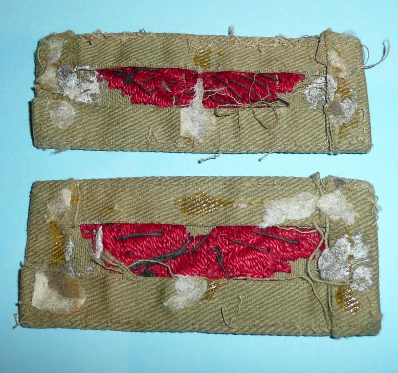 Removed from uniform, a facing pair in terms of manufacture and colour, but one slightly larger than the other. In very good condition. Worn in the Far East and Tropics.