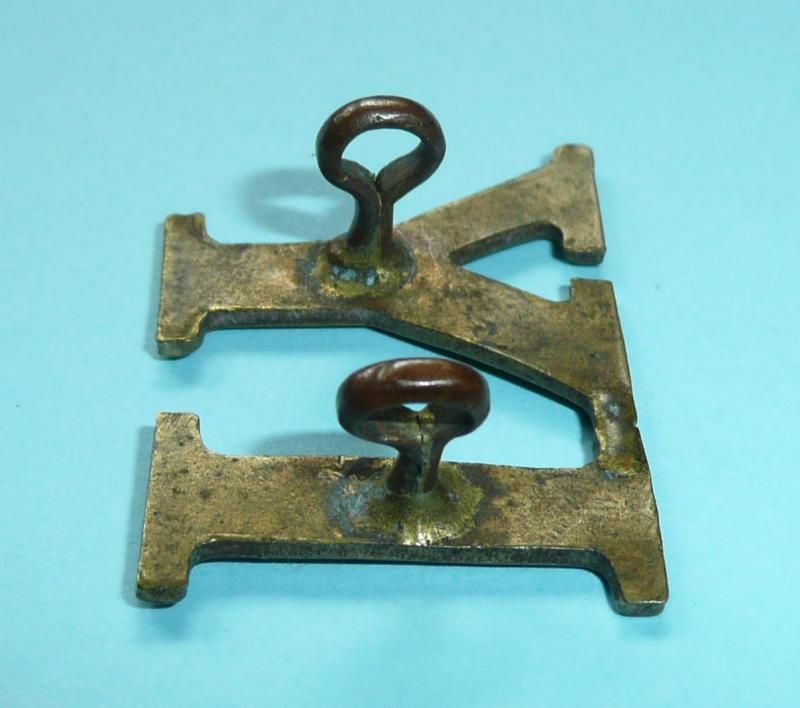 Circa 22mm tall and 30mm across the letters I and Y braised together at the top with two original loops to the reverse. Size and length of loops suggest as worn on slouch hat. In very good condition and hard to come by.