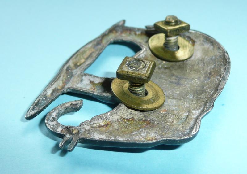 The largest of the elephant herd, as worn on the officer's full dress cross / pouch belt plate below separate battle honour. With original screw posts, washers and retaining nuts. Circa 58mm wide and 42mm tall. In superb condition (some dark toning to silver plate) and rare.
