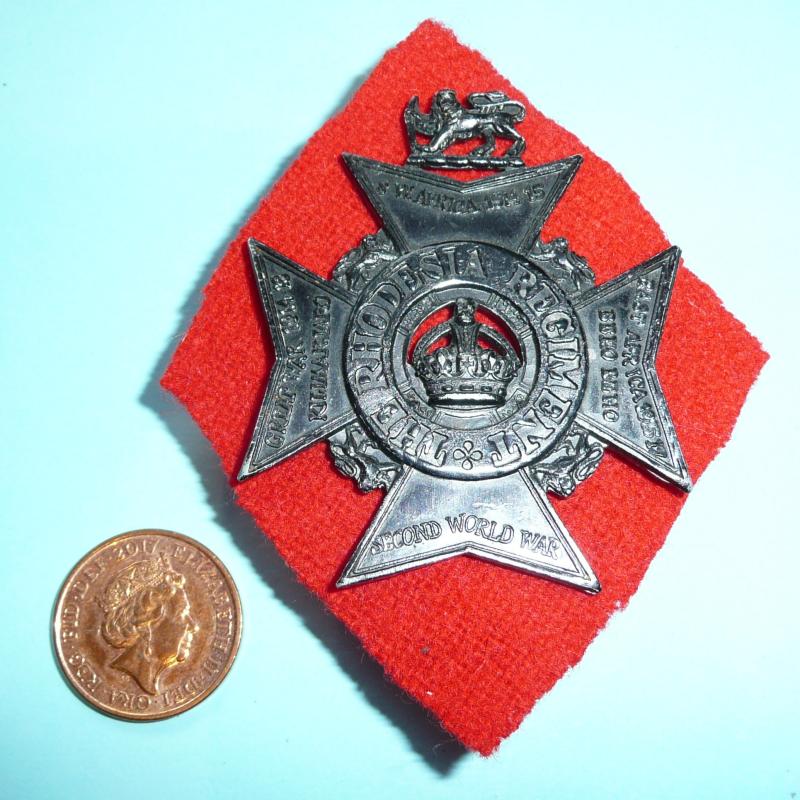 South Africa - The Rhodesia Regiment Blackened Anodised Aluminium AA Cap Badge with Red Felt Badge Backing