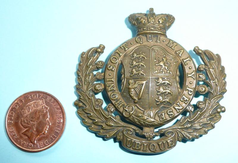 Missing its rectangular backing plate, but in good condition, gilt finish dulled to brass. Two fastening stumps to reverse. Sold as seen. Comm SiSa