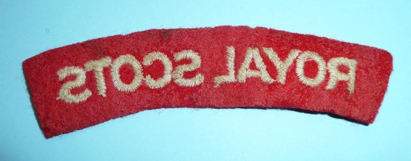 WW2 Royal Scots Woven White on Red Felt Cloth Shoulder Title