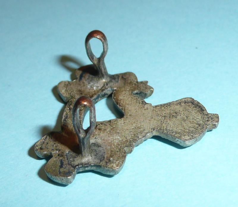 38th East Coast Battalion (1917) / East Coast Battalion post 1920 Officer's silver plated Field Service Cap Badge with two original long loops to the reverse (some service wear). Worn until 1947. A lovely little thing in silver plate with crown over a fish scrolls below 'EAST COAST BATT. AFI / MANU / FORTI. Scarce.