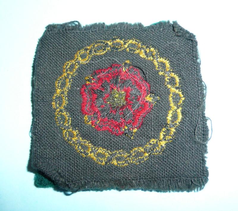 Removed from uniform, some damage to felt on bottom edge otherwise in reasonable condition. A Red Rose in a Yellow on a green background. The intertwined lines of the badge represent two borders of Scotland and Wales which formed the north and western borders of the district.